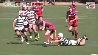 前半12-0で長崎南山がリードするが、後半2分、9分、17分と続けて筑紫が得点12-19とするが21分に南山が同点。24分に5点をつかし24-19で長崎南山が勝利!